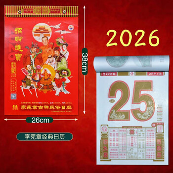 妙如意李居明挂历2026年攻守通胜月历家用马年李居明门神老黄历客厅挂墙式年历 李居明2026年月历附海报(1本)12月初发